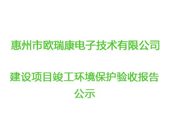 根據(jù)《國(guó)務(wù)院關(guān)于修改〈建設(shè)項(xiàng)目竣工環(huán)境保護(hù)管理?xiàng)l例〉的決定》(國(guó)務(wù)院令第682號(hào)),以及環(huán)保部《關(guān)于發(fā)布的公告》(國(guó)環(huán)規(guī)環(huán)評(píng)[2017]4號(hào)),現(xiàn)將惠州市歐瑞康電子技術(shù)有限公司建設(shè)項(xiàng)目竣工環(huán)境保護(hù)驗(yàn)收內(nèi)容(包括驗(yàn)收?qǐng)?bào)告、驗(yàn)收意見(jiàn))公示如下: